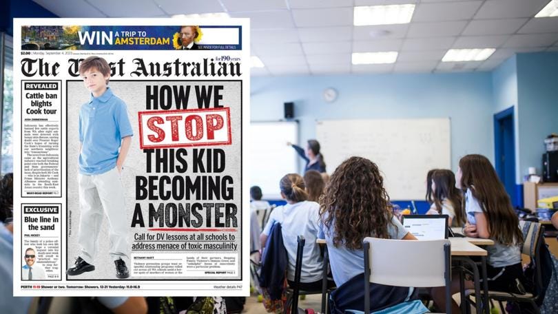 Calls regularly circulate, as in the West Australian’s “How We Stop This Kid Becoming a Monster,” for teaching to address the problem of predatory masculinity. Unless the feminist deprogrammers can get to work in the early years, we’re told, the boys will succumb to their inner monster. Boys learn that they can hurt girls and women even without meaning to, just by looking at them or holding traditional views. As we’ll see, any boy who objects to his own vilification will learn that objecting itself is a technique of domination.