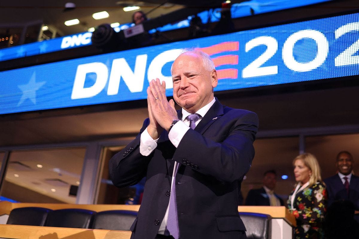 Democrats promoted a progressive masculinity, one that was explicitly subservient to women. Francis Wilkinson at Bloomberg praised VP candidate Tim Walz as a man who “can happily play second fiddle to a Black woman” and “doesn’t have to live in constant fear of losing status.” In case the implied insult to imagined Republican men (with their fragile masculinity) was not clear enough, Wilkinson concluded his piece with a direct address: “He’s not frightened of women, afraid of Black people or terrified of the future. Why are you?”