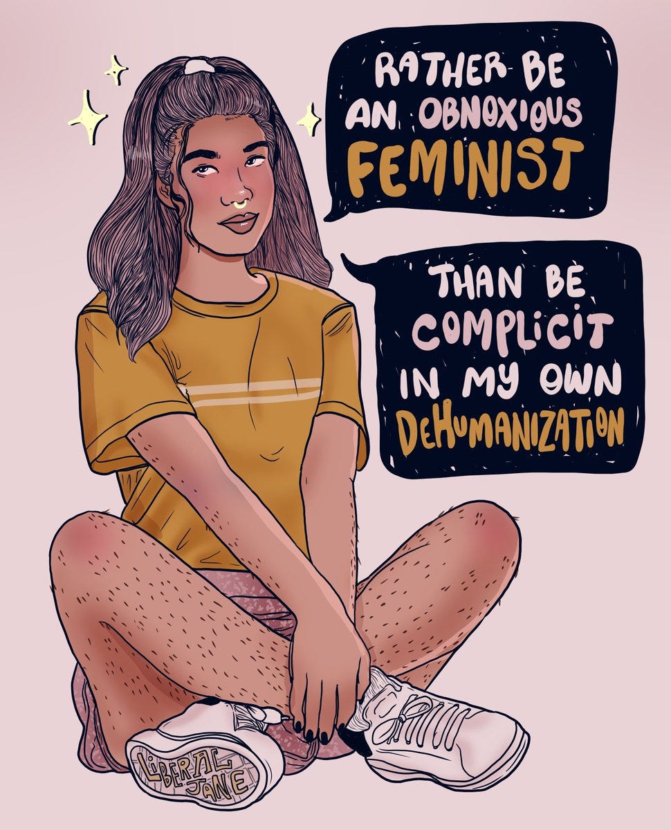 This idea is definitely still current in pervasive talk of objectification. On International Women’s Day of this past year, one X user calling herself Liberal Jane (a “Queer feminist making art about bodily autonomy”) tweeted “Happy #Women’sHistoryMonth to all the badass women and girls who are making this world a better place everyday [sic]. Empowered women empower all women.” The tweet was accompanied by a drawing, perhaps by Jane herself, showing an “empowered” girl complete with nose ring and unshaven legs.